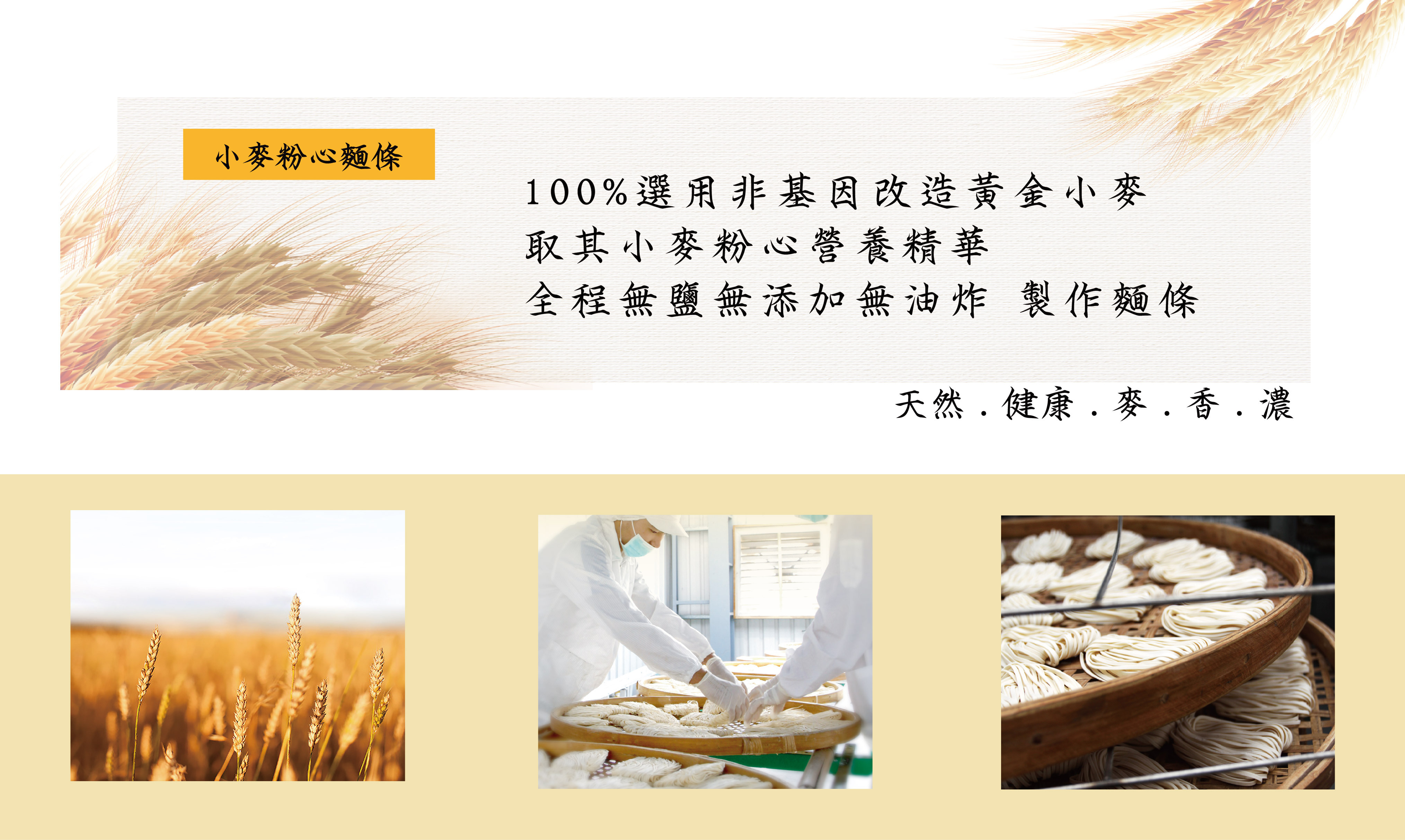 100%非基因改造黃金小麥製作粉心拉麵條